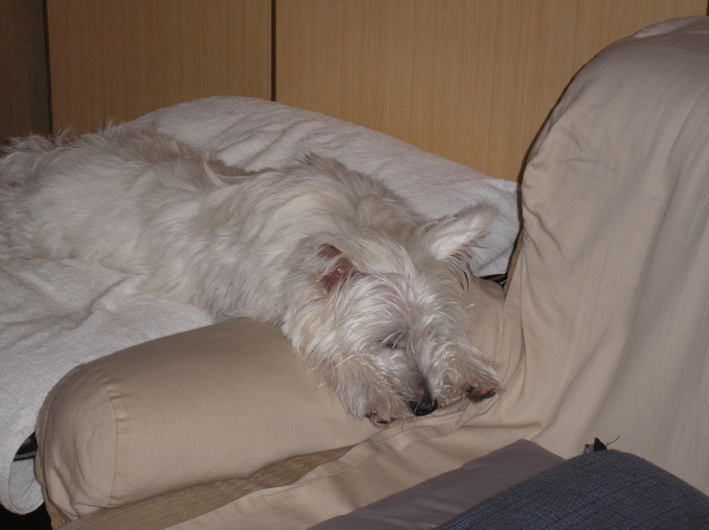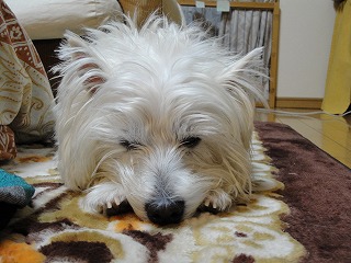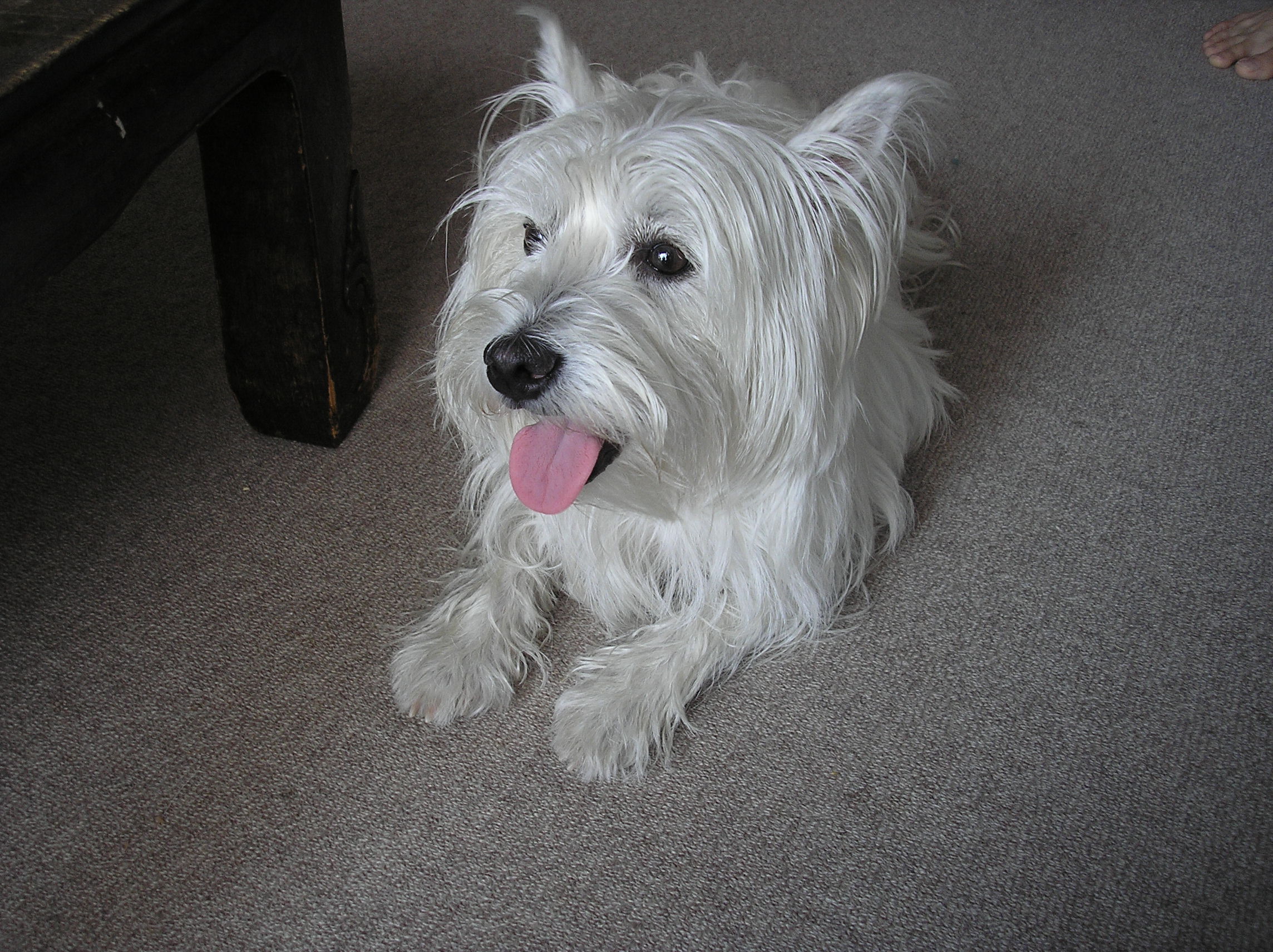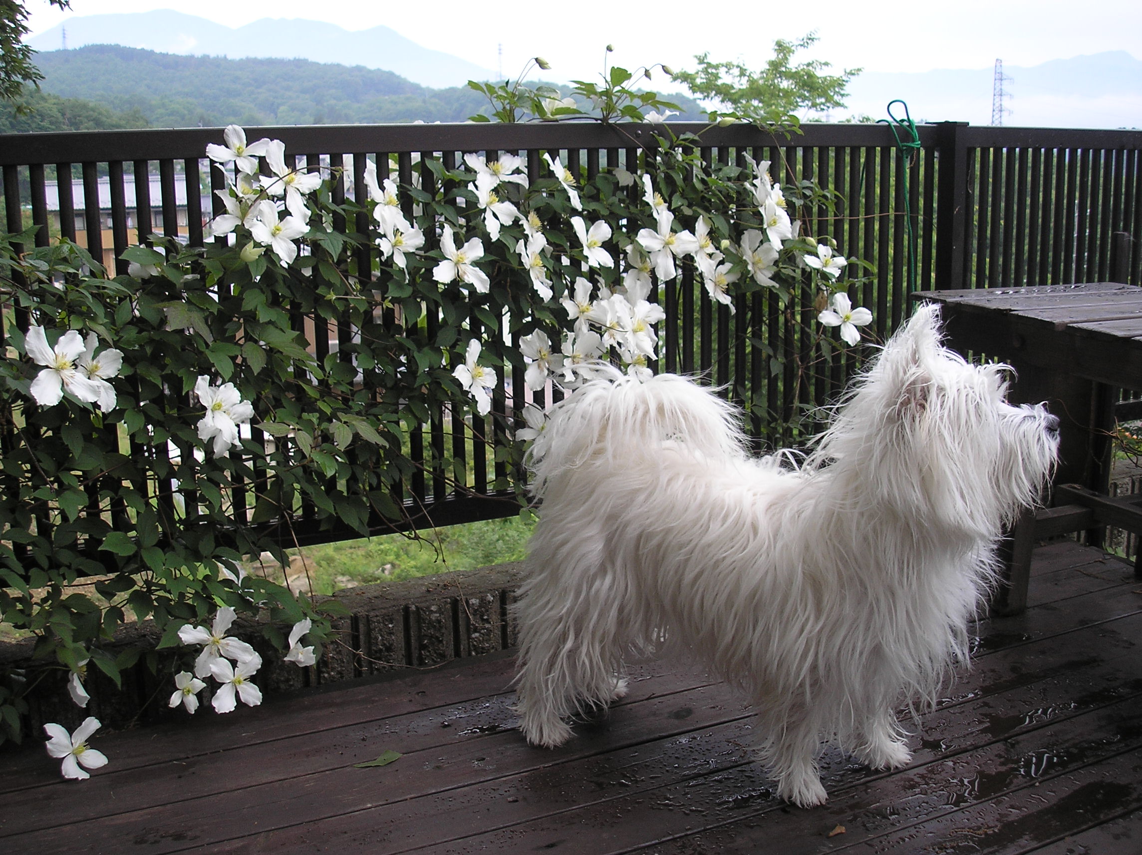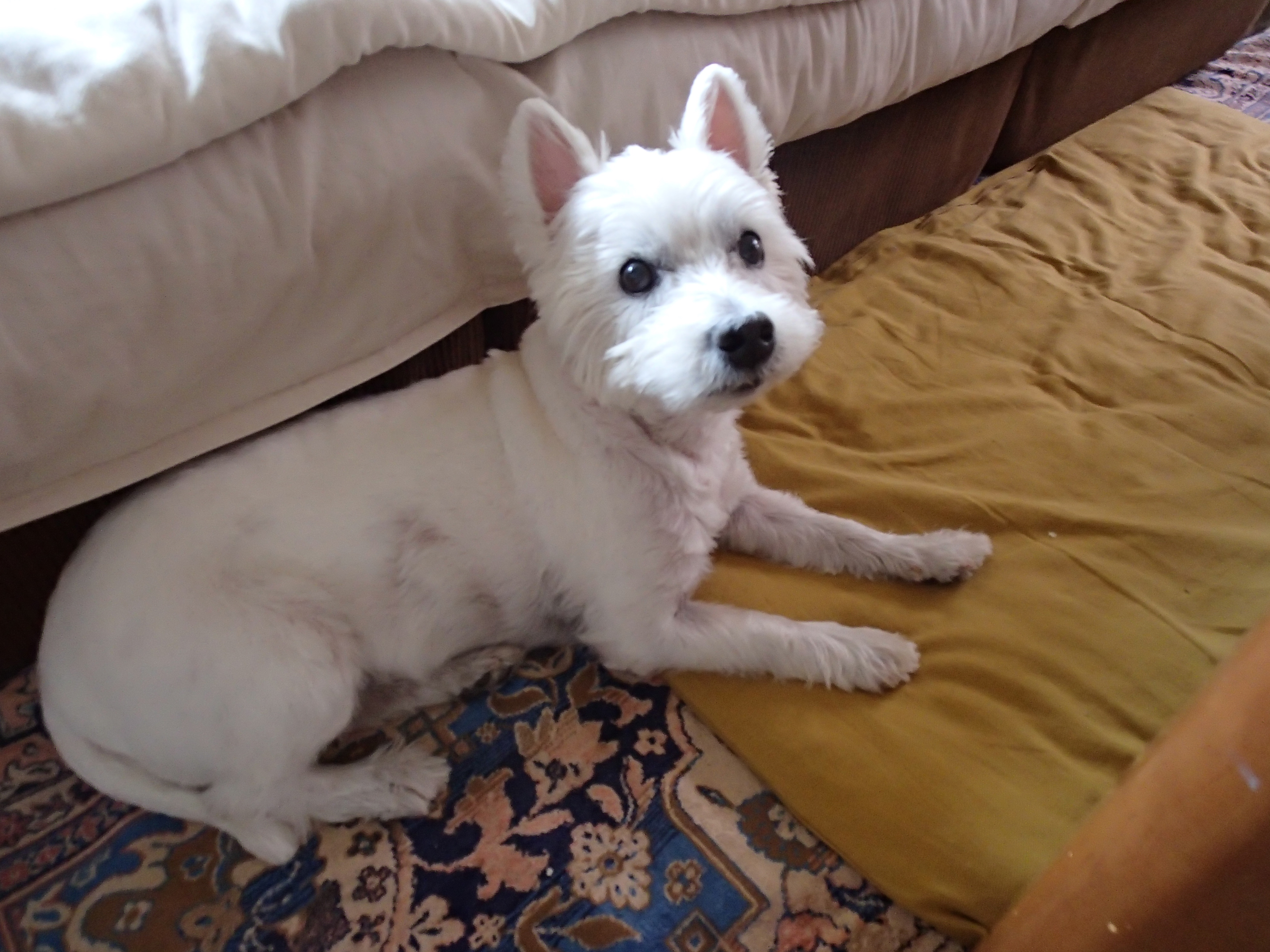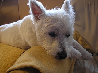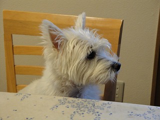 キキはウェスティです。これから我が家の一員です。(04-5-23)3月生まれです。 ウエスティ=ウエスト・ハイランド・ホワイト・テリア ドッグフードのシーザーのコマーシャルに出ているあの子です. |